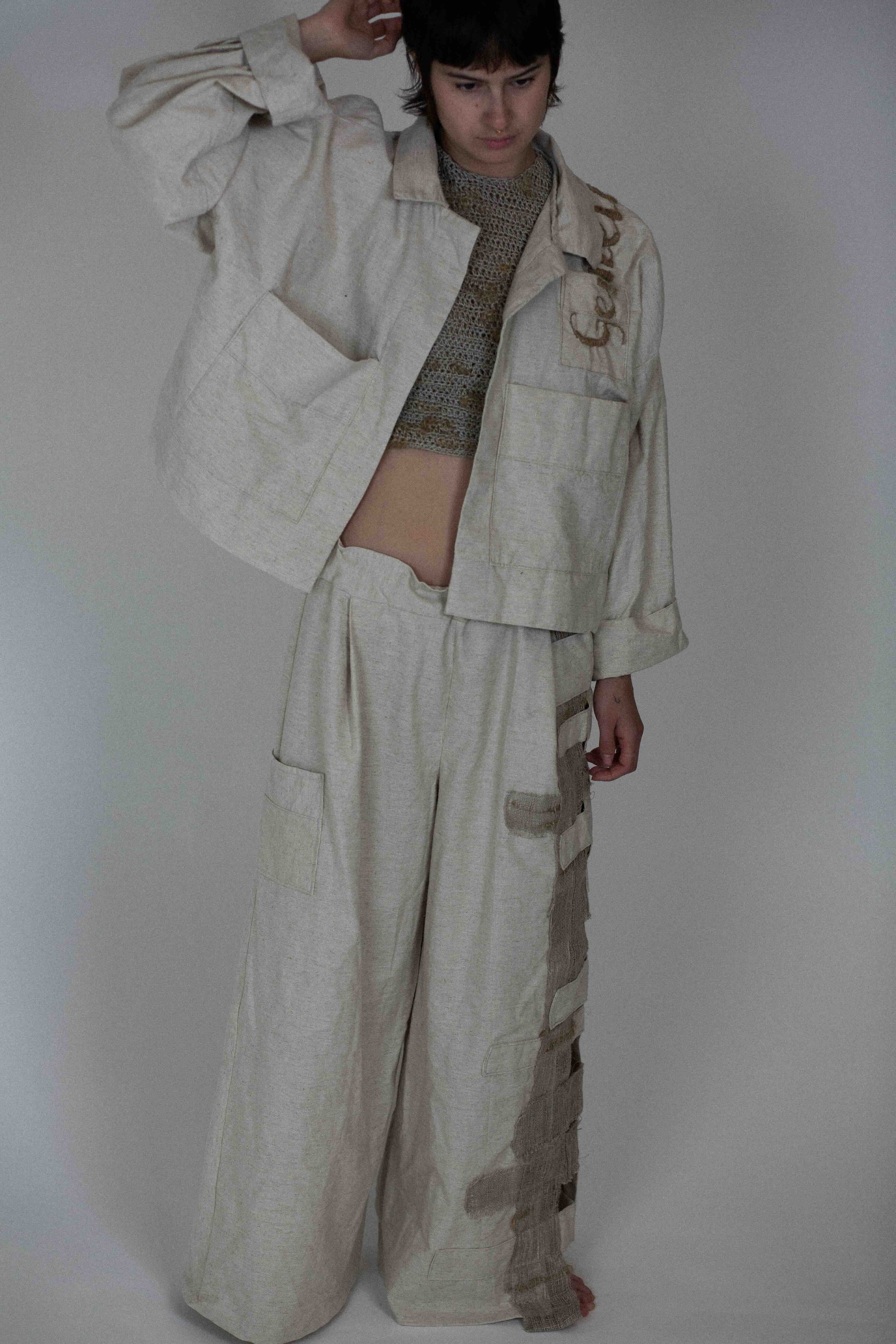 The outcome is this collection which focuses on the different phases I went trough within the project. A dowry for a new generation—a meaningful legacy that reflects on the world and problems we face and gives perspective on how to overcome those. On the way I discovered countless ways to use linen as a local monomaterial and hope to reestablish its appreciation. But for me personally the biggest part of this project was the silence of physical textile work. The connection and reflection that come with an embodied experience of physical labor that underlies creations.